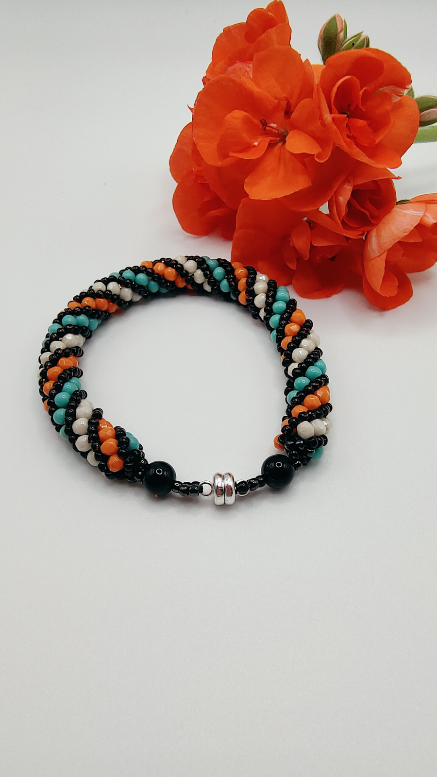 Brățările sunt confecționate din cristale (mărgele Toho, fațetate) și pietre semiprețioase Onix.