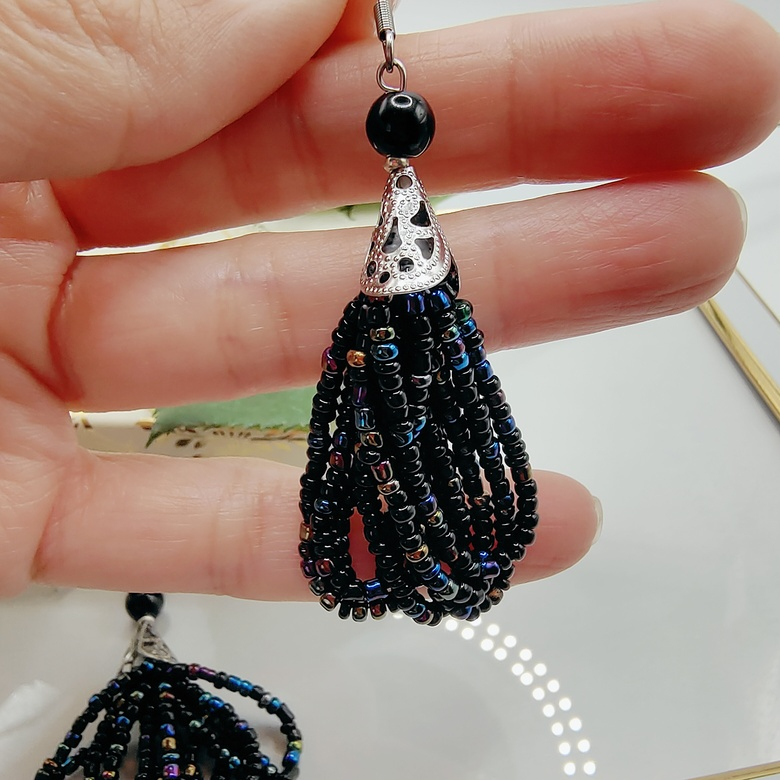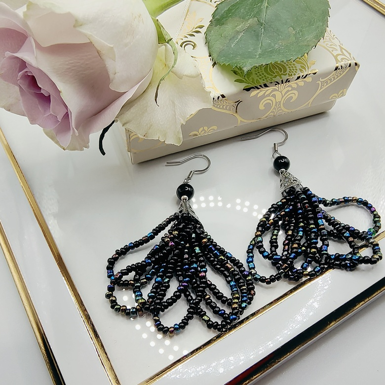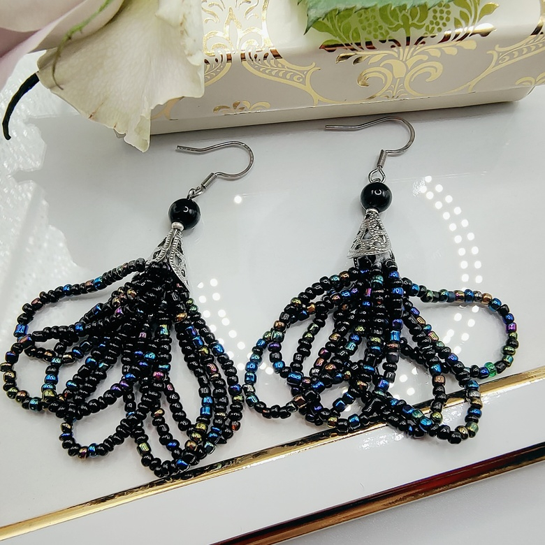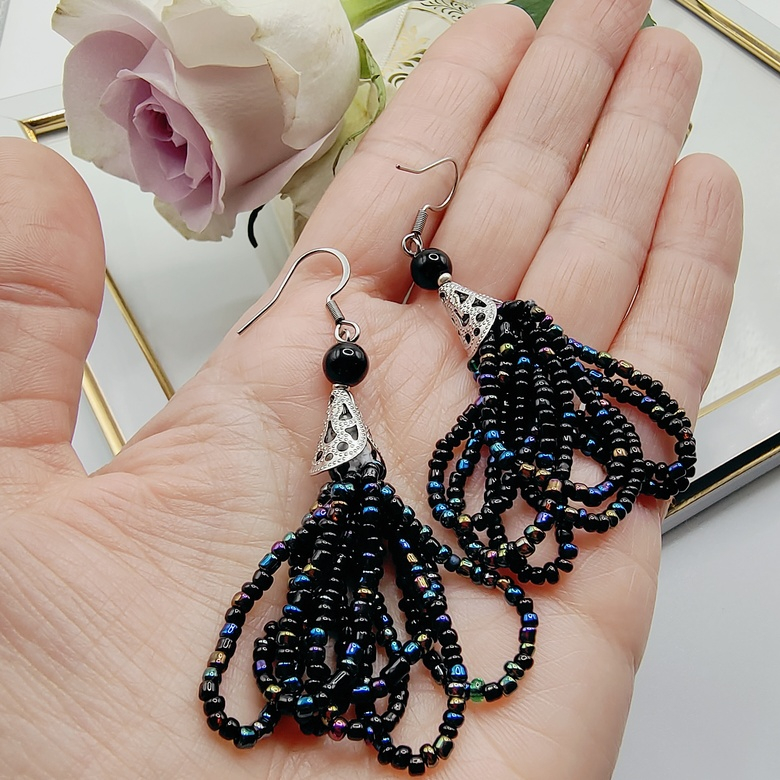 • Cercei realizați manual din mărgele japoneze Miyuki și pietre semiprețioase Onix.