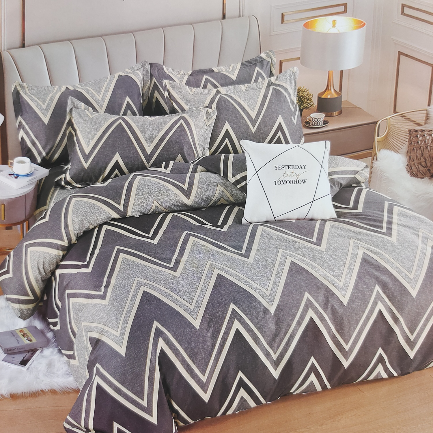 Set lenjerie pat dublu, zig-zag